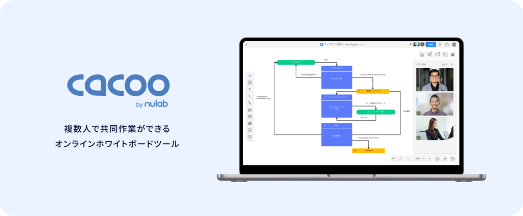 誰でも簡単に使える、クラウドベースのオンラインホワイトボードツールです。チームやプロジェクト関係者のアイデアや作業進捗を、すべてオンラインで簡単に共有し、一元管理できます。フローチャート、ワイヤーフレーム、AWS構成図、組織図など、豊富なテンプレートと機能を備えており、スムーズなコミュニケーションを支援します。